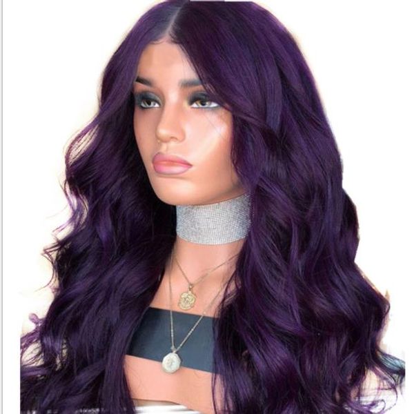 Full Lace Human Hair Wigs Purple 100 Real Long Lace Front Wigs